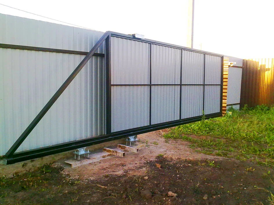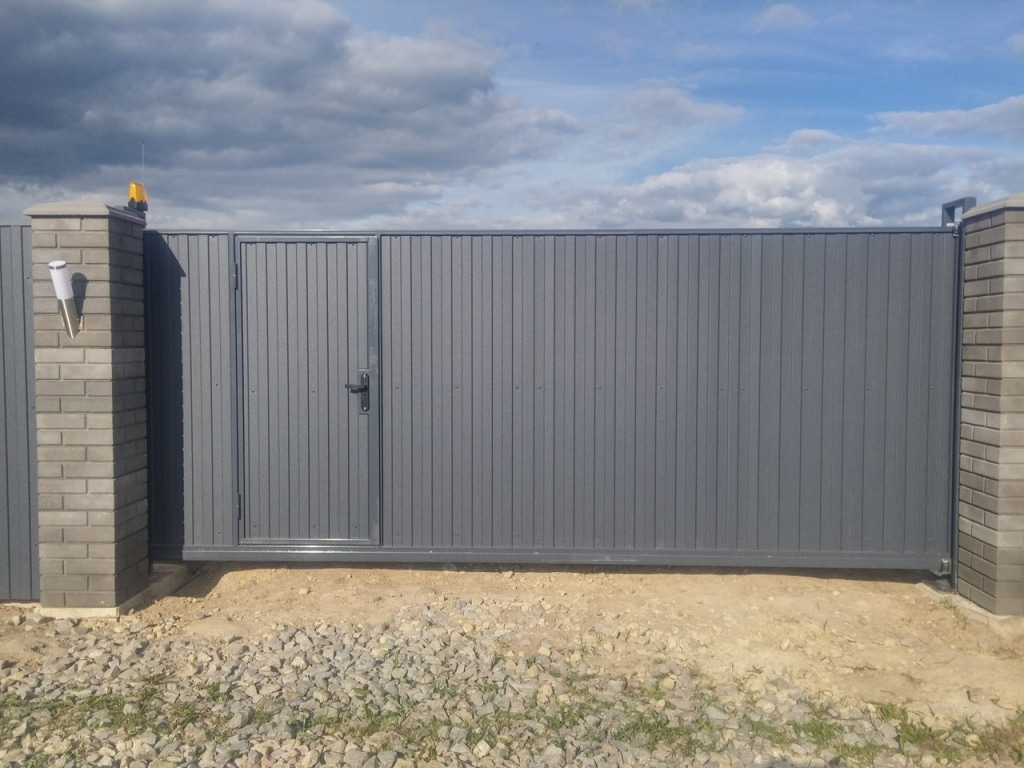 Откатные ворота из профнастила с встроенной калиткой и автоматикой
